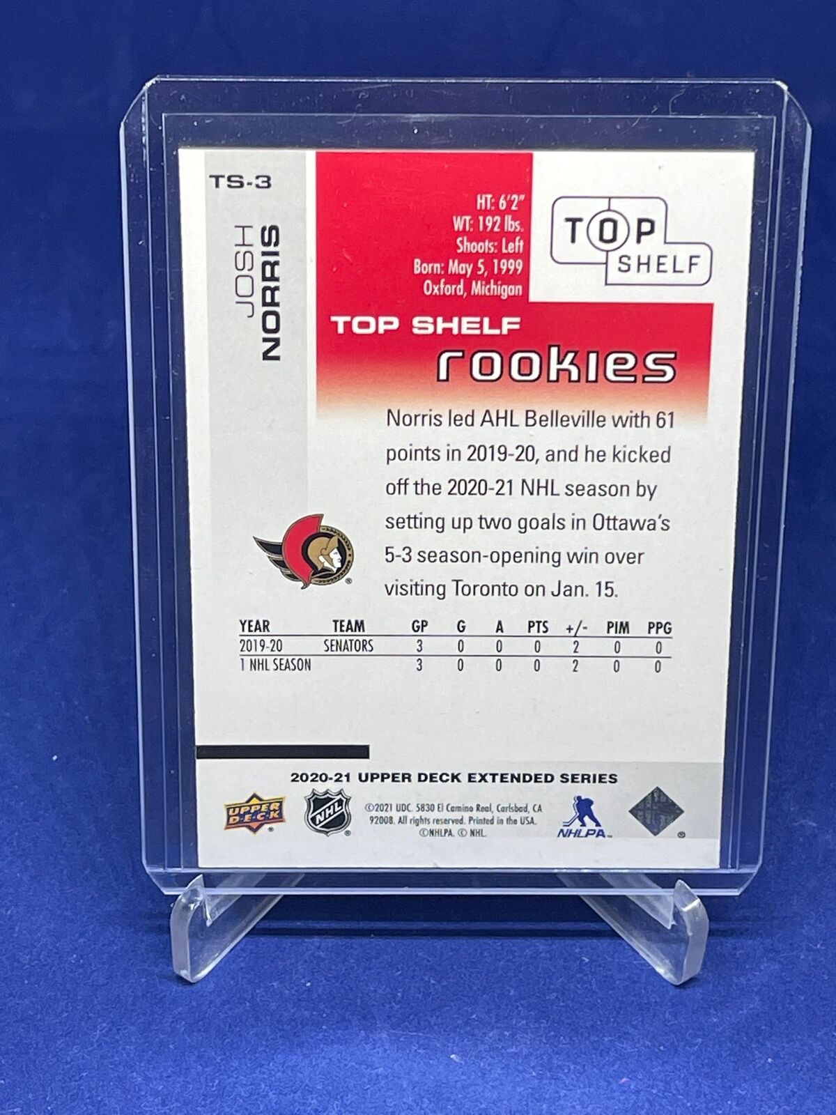 JOSH NORRIS 2020-21 UPPER DECK EXTENDED SERIES TOP SHELF ROOKIES RC #D 391/500