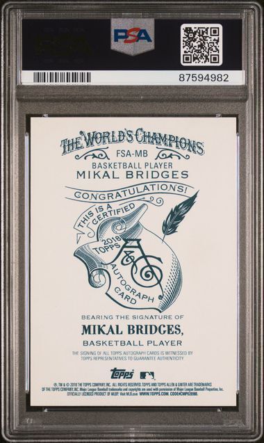 You are purchasing a 2018 Topps Allen & Ginter Full-Size Non-Baseball Autographs Mikal Bridges #FSAMB B. B. Autograph PSA 10. You will receive the exact item in the photographs. Thank you for looking. Listed With Mascot.