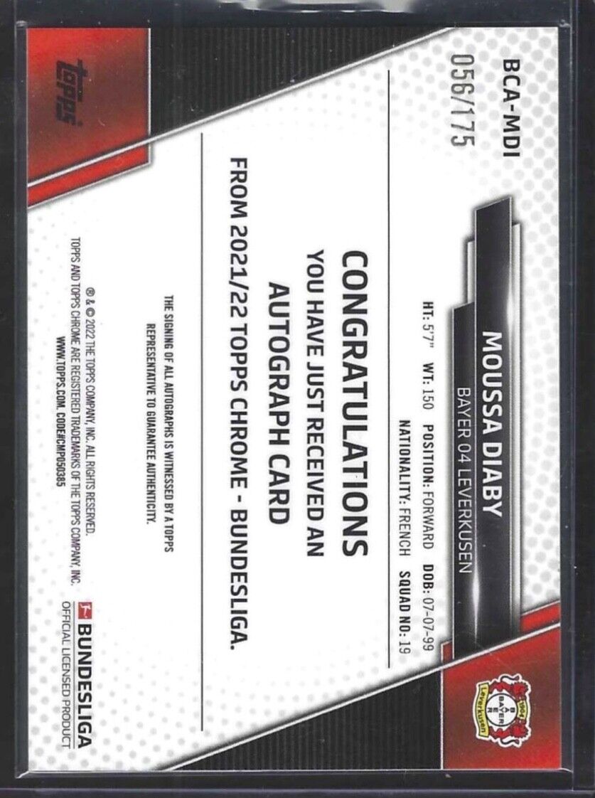 MOUSSA DIABY 2021-22 TOPPS CHROME PRISM REFRACTOR AUTO #D 056/175