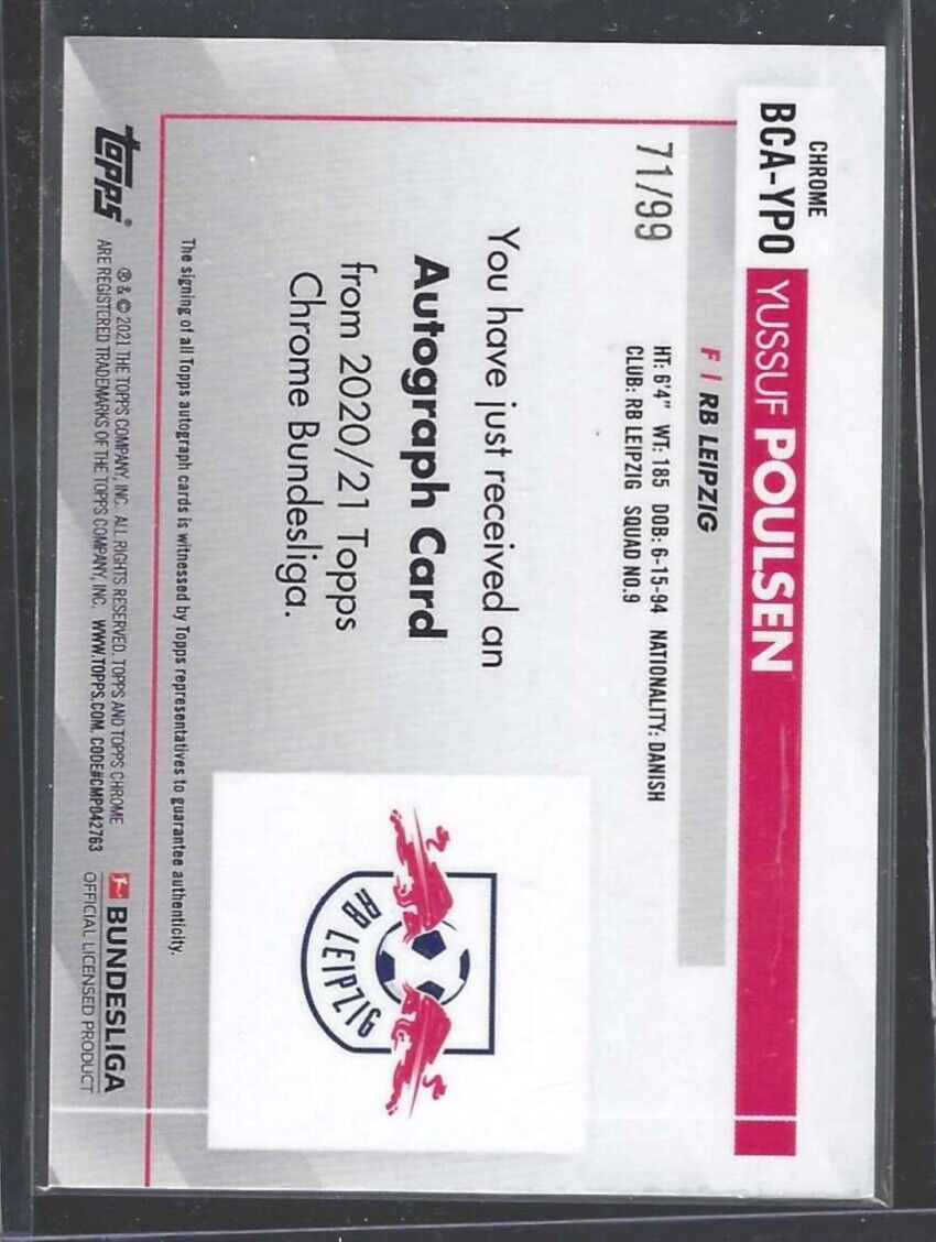 YUSSUF POULSEN 2020-21 TOPPS CHROME BUNDESLIGA GREEN REFRACTOR AUTO #D 71/99